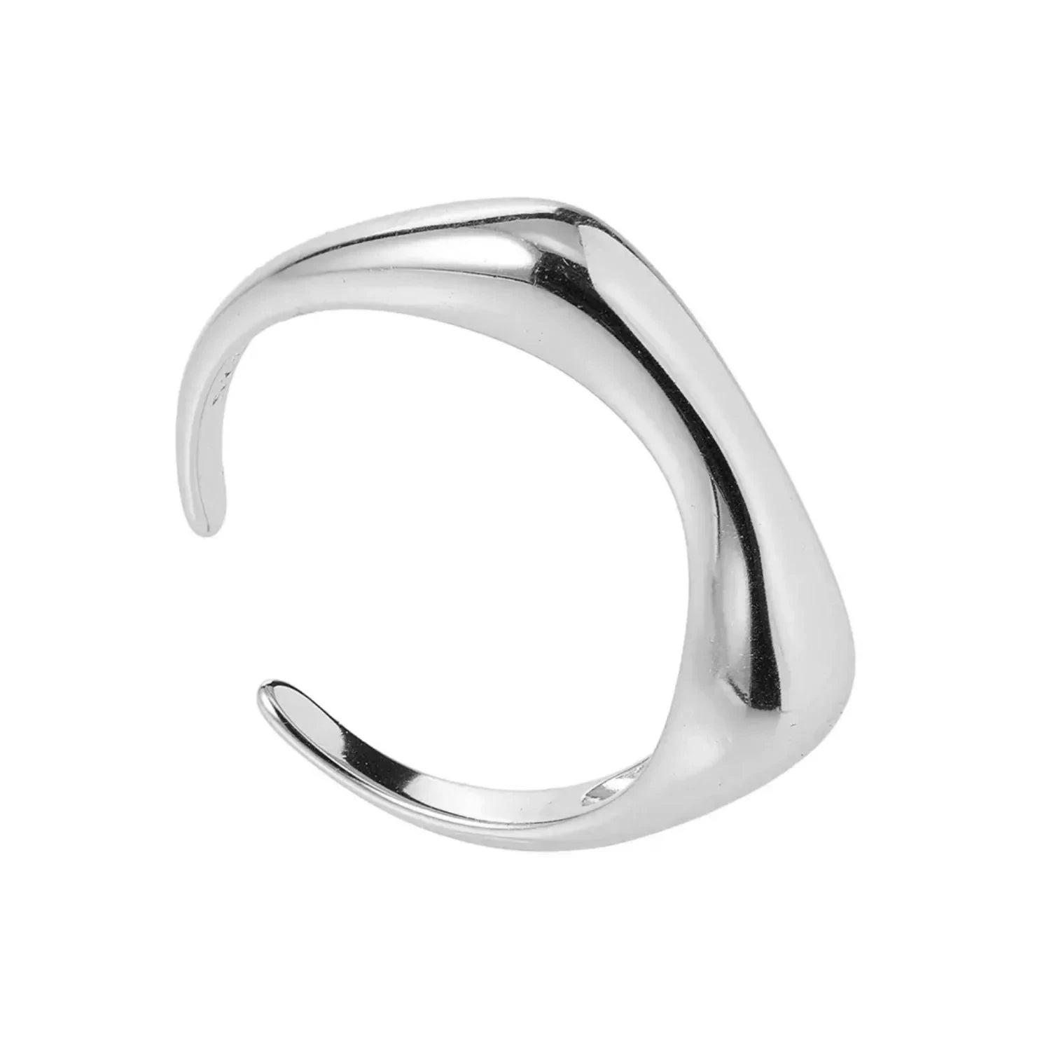 A contemporary adjustable rectangular ring with a sleek, minimalist design. Its clean lines and polished finish make it a versatile piece, perfect for everyday wear.
