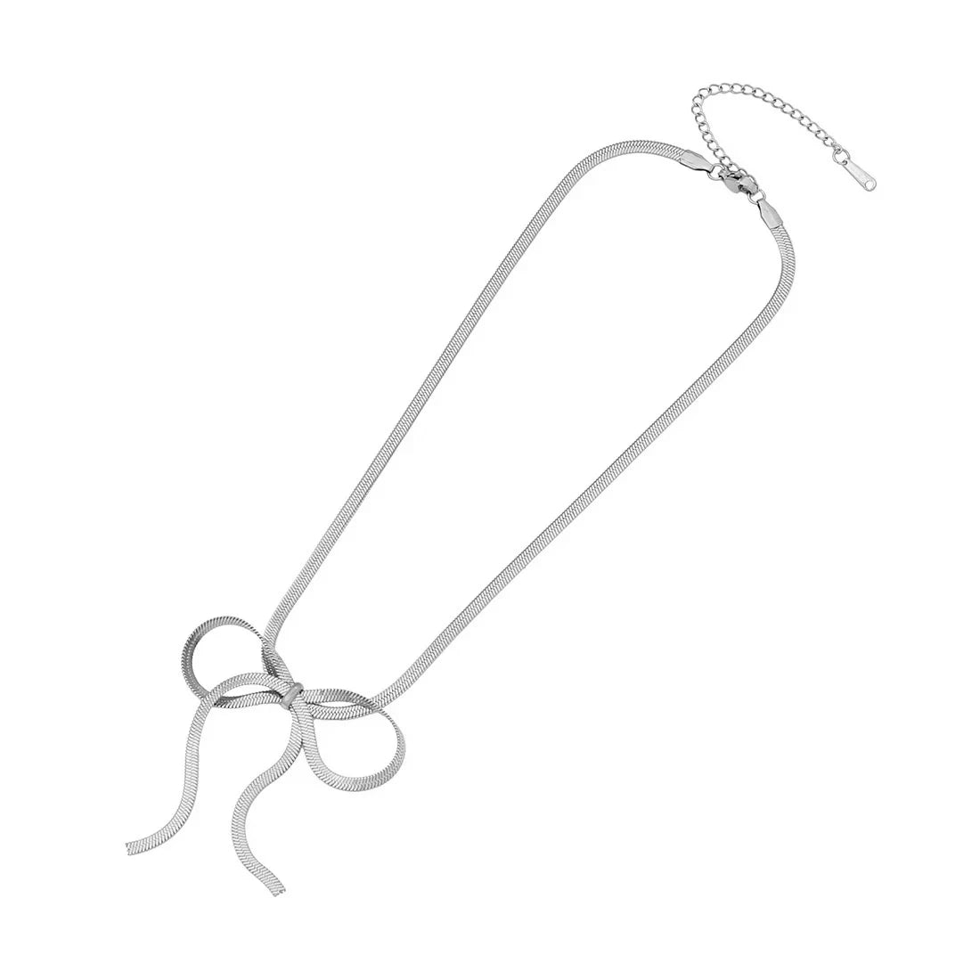 The Tail Bow Necklace features a delicate bow with flowing, elongated tails, creating a refined and graceful design.
